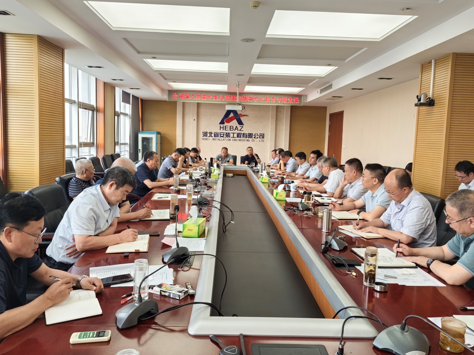 2025年9月3日,為紀(jì)念中國人民抗日戰(zhàn)爭暨世界反法西斯戰(zhàn)爭勝利80周年,河北省安裝工程有限公司積極組織職工集中觀看閱兵盛況直播。公司機(jī)關(guān)及各分公司、項目部共計2000余人通過多種方式同步參與,共同回顧歷史、緬懷先烈、展望未來。上午9時,習(xí)近平總書記發(fā)表重要講話,9時19分大閱兵正式開始,公司機(jī)關(guān)及各分公司、項目部會議室座無虛席,職工們們整齊地坐在屏幕前,神情莊重地注視著電視畫面。在閱兵式過程中,